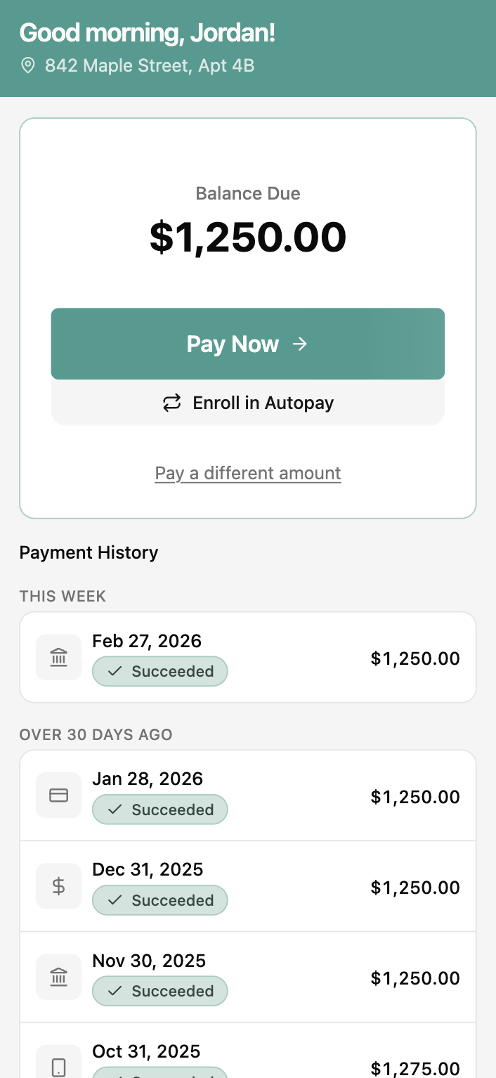 Replace money orders, checks, and cash payments with the digital accounts your residents already know and trust, like Cash App, Venmo, Chime, SoFi, or even a prepaid card.1